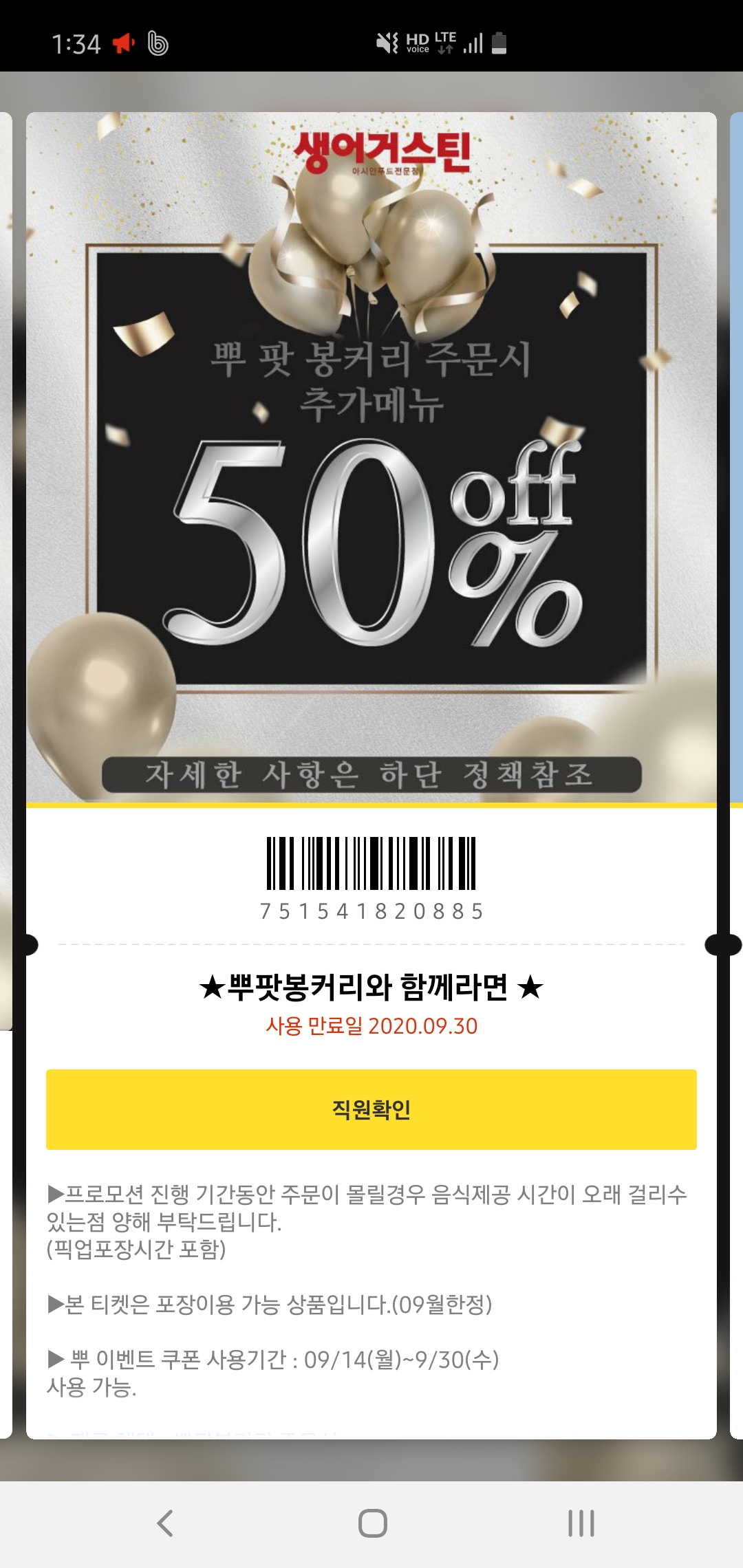 직원께 보여드리고 할인 받습니다!!!