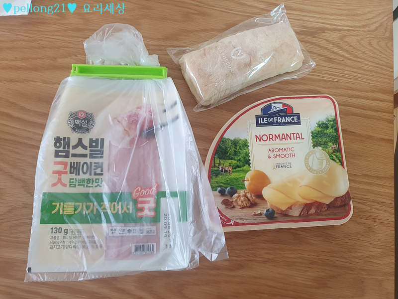 2. 재료를 준비합니다. - 빵, 에멘탈치즈, 베이컨, 계란, 상추, 토마토