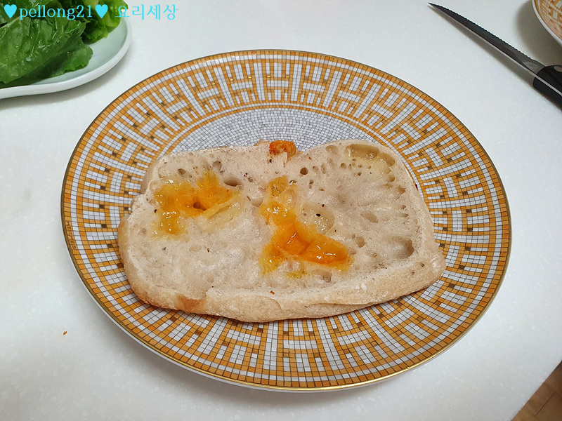 1. 우선 치아바타를 구워줍니다. (식빵도 좋은데 요새 쫄깃한 치아바타 홀릭입니다)