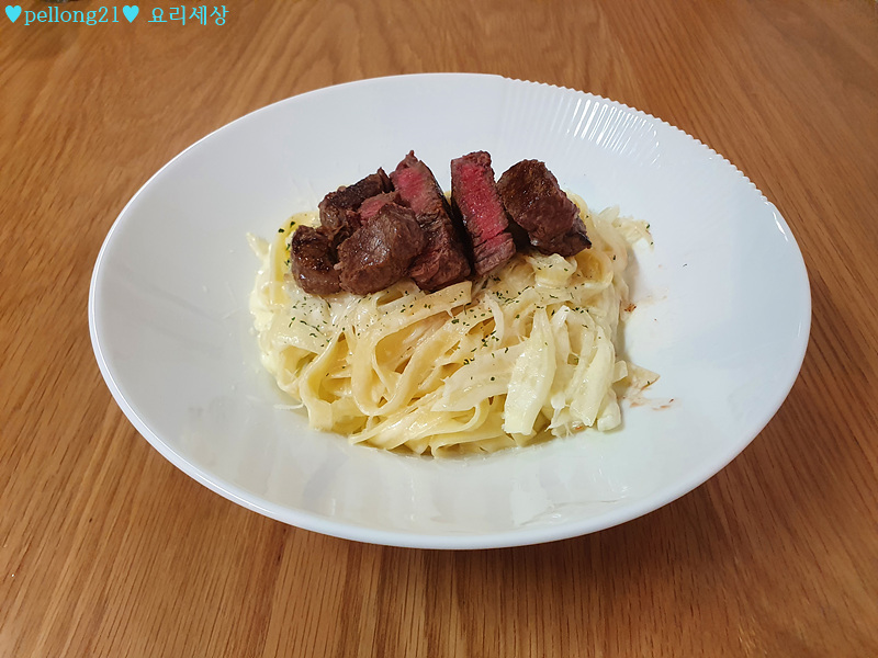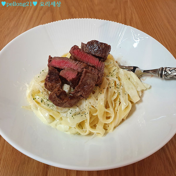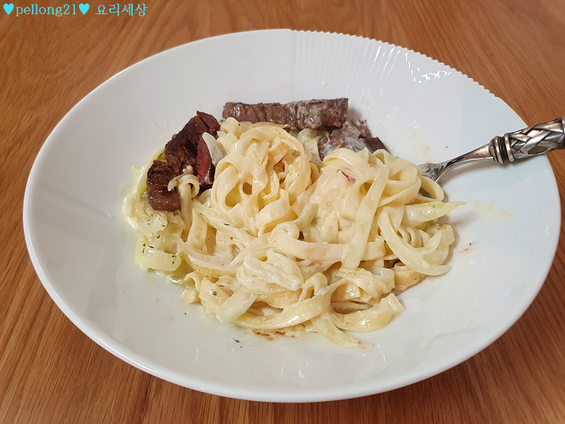 크림파스타를 먹고 싶었던 어느날,, 스테이크 고기도 어서 먹지 않으면 안되었던 어느 날,, 만조 파스타를 그냥 스테이크 고기로 만들어보자는 생각이 들어서 크림 파스타 해먹었습니다. ㅎㅎㅎ