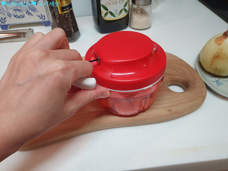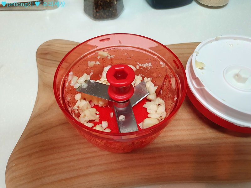 저는 마늘 다질 때 이 돌돌이(?) (다지기, 차퍼)를 사용해요. ㅎㅎㅎ넘나 편한것.