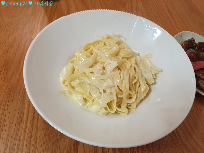 사진에는 소스가 잘 보이지 않지만,, 크림 소스도 면에 너무 잘 붙어서 맛있게 완성되었어요. ^^