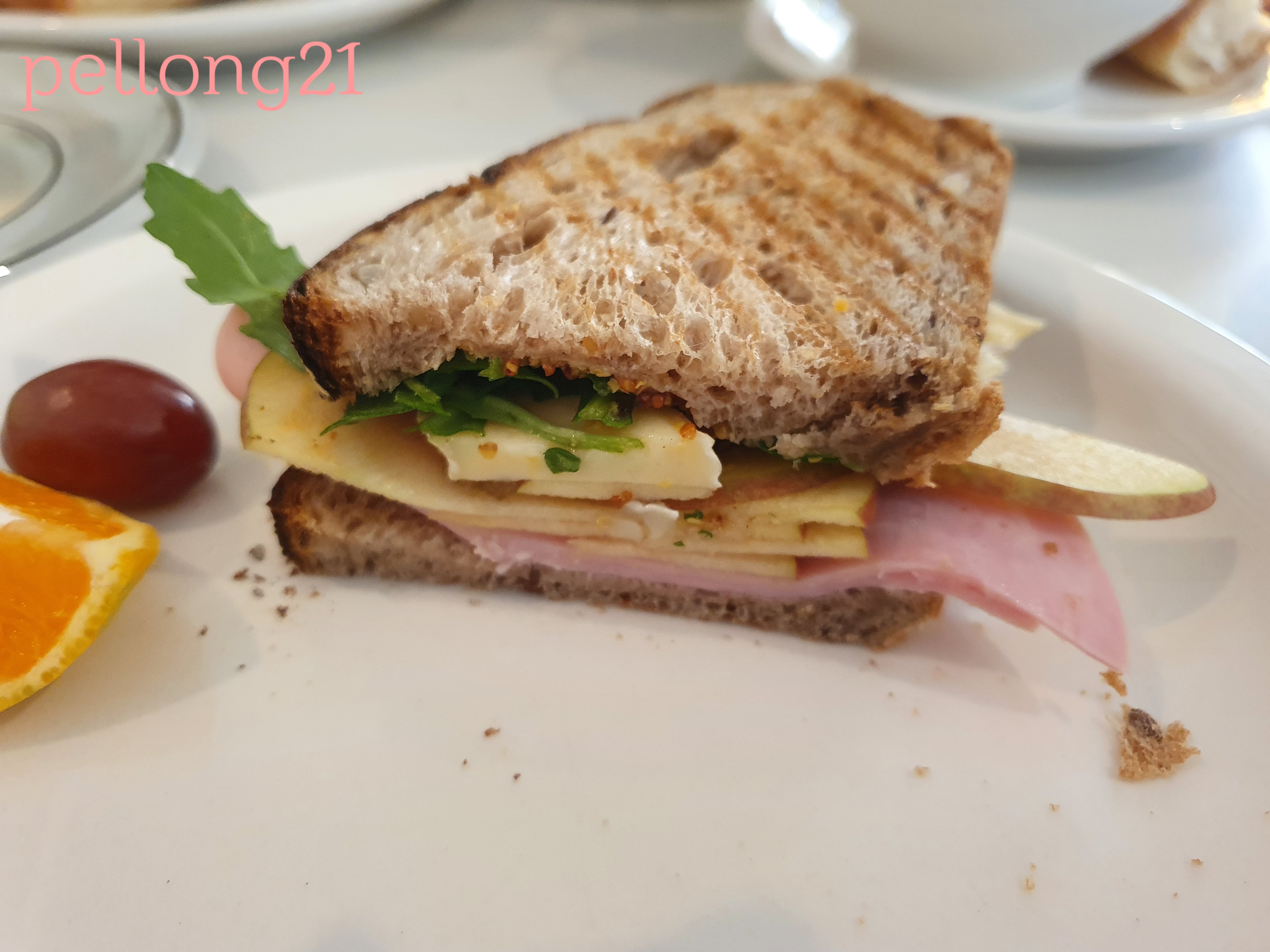 브리치즈는 기대보단 조금 들어있어요. ㅎㅎ 샌드위치 단면을 모든 재료가 골고루 분배되어서 적층되어 있는 것을 추구하는 저로서는, 뭔가 빈 구석이 보이기는 합니다. 백화점에서 테이크아웃 하는 샌드위치도 가득가득 차있어서 습관이 됐어요.