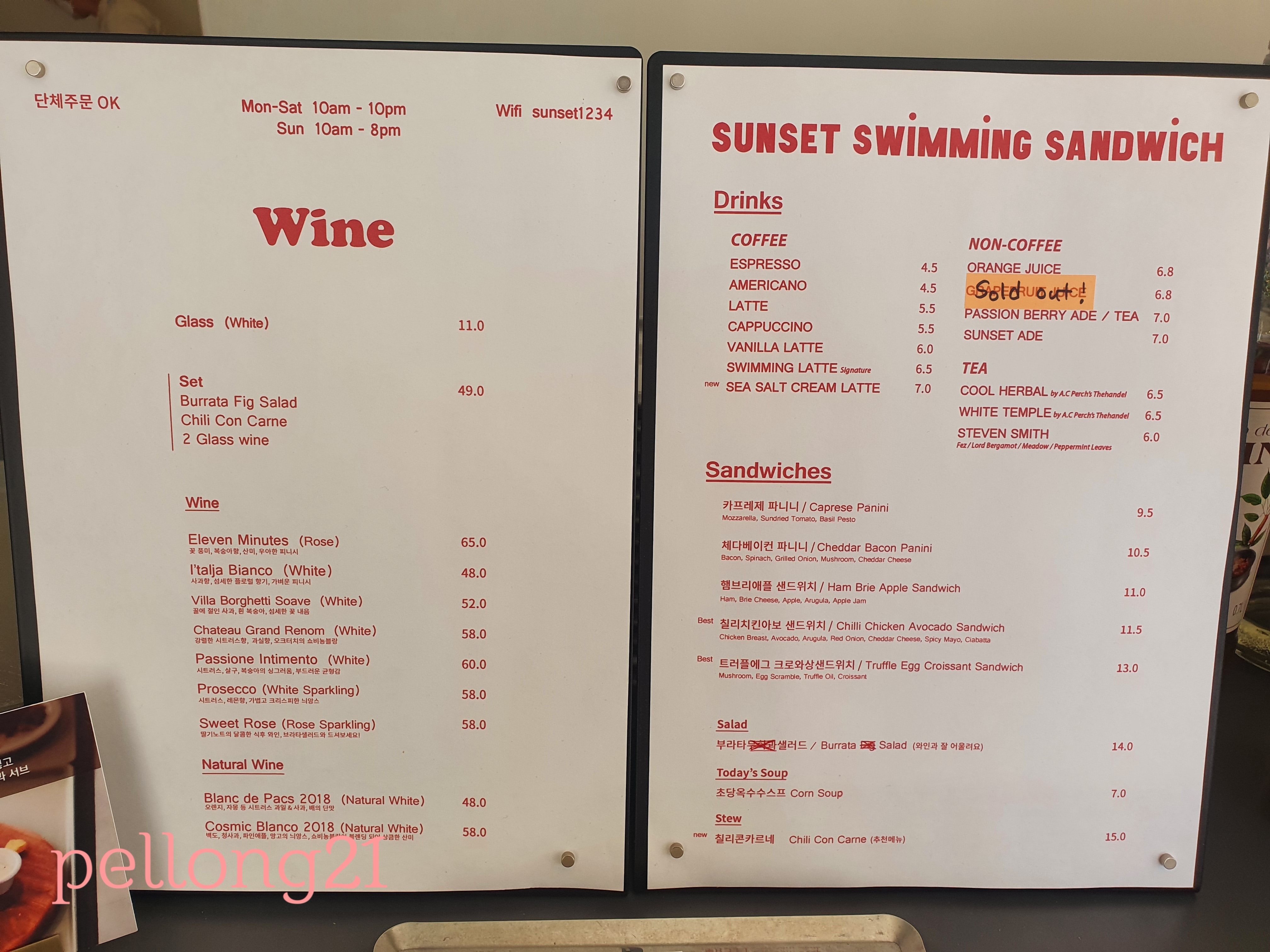개인적으로 샌드위치와 와인을 함께 파는 것도 너무나 좋았습니다. 취향 저격이네요. 임신중이 아니었다면, 주문해서 먹었을 거에요. 집에서 먹을 때도, 가벼운 샴페인이나 화이트와인과 함께한다면 점심식사로 정말 완벽할 것 같아요. 그런데 병와인이 잘 팔릴까요? 글라스가 더 많이 나갈 것 같은... 저녁엔 병와인도 많이 드시는 것인지, 궁금합니다.
