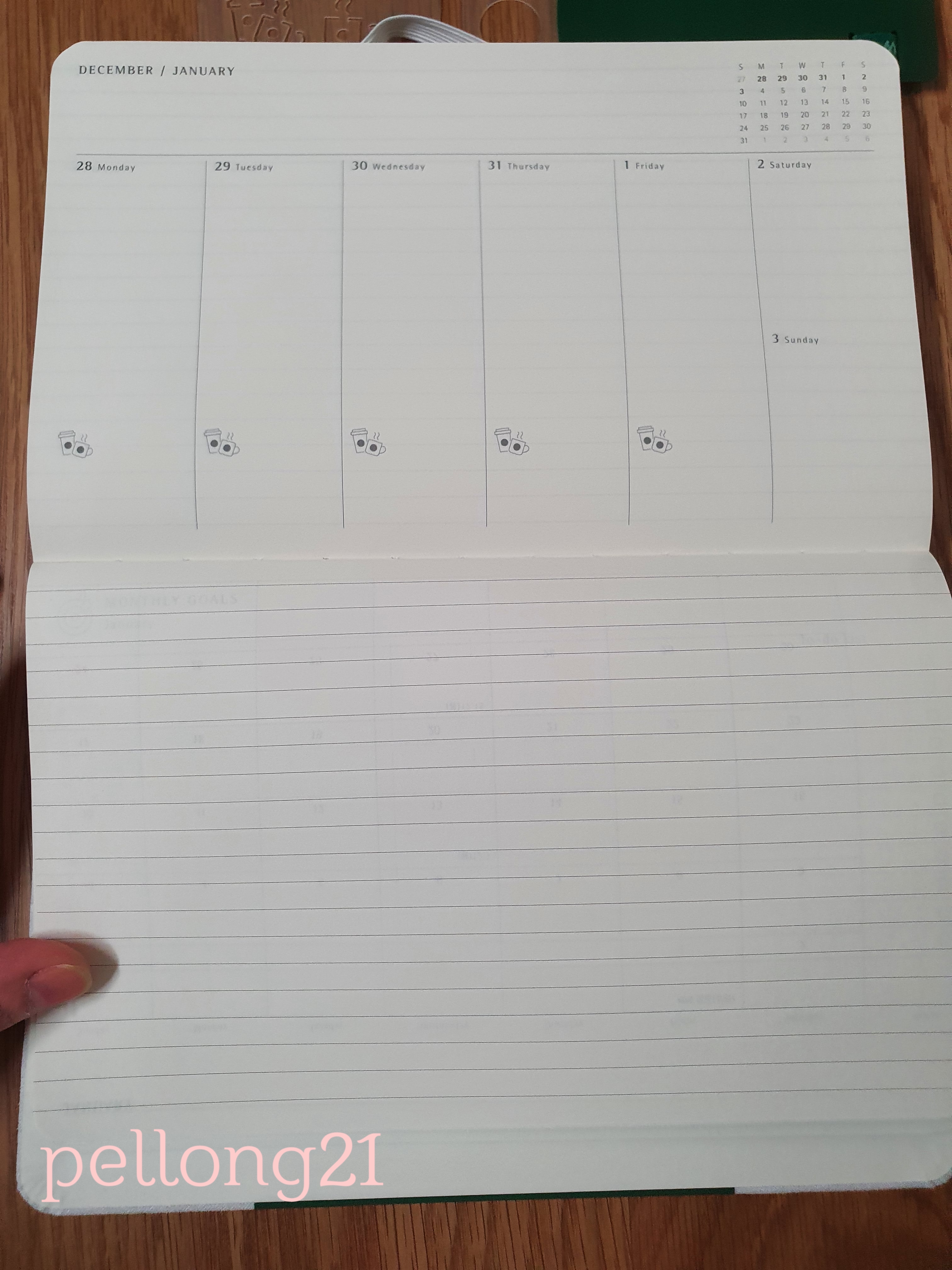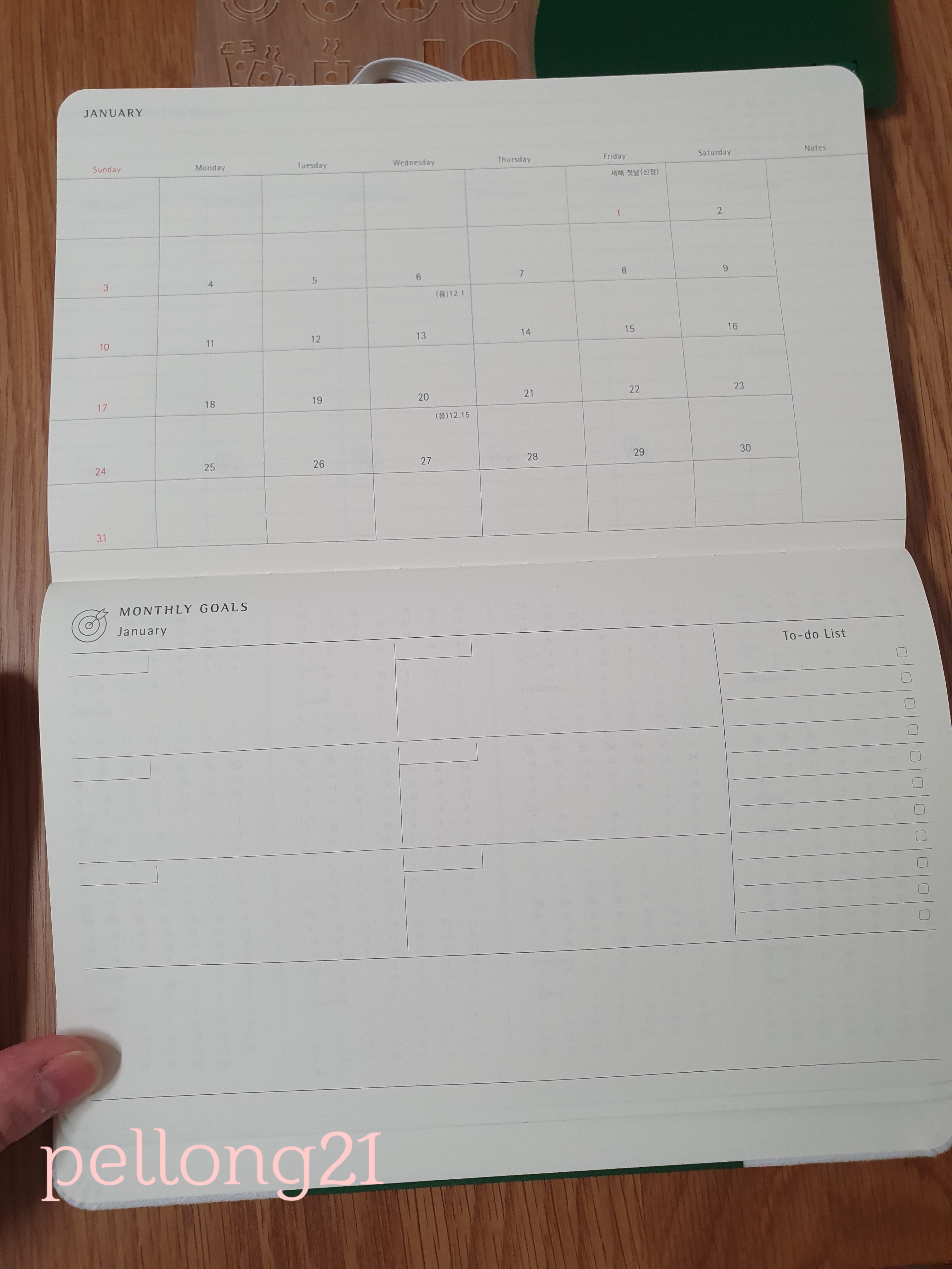드디어 플래너 시작이에요. 월간으로 시작되네요. 12월부터 있으면 한달 일찍 사용할 기대를 했는데, 아쉽게도 1월부터 시작됩니다. 월간달력 아래에 먼슬리 목표를 작성할 수 있는 칸이 있어요. 이거 좋은거같아요. ㅎㅎ 특히 직장에서 쓰시는 분들은!! 월간도 많이 쓰실테니깐요~~~!