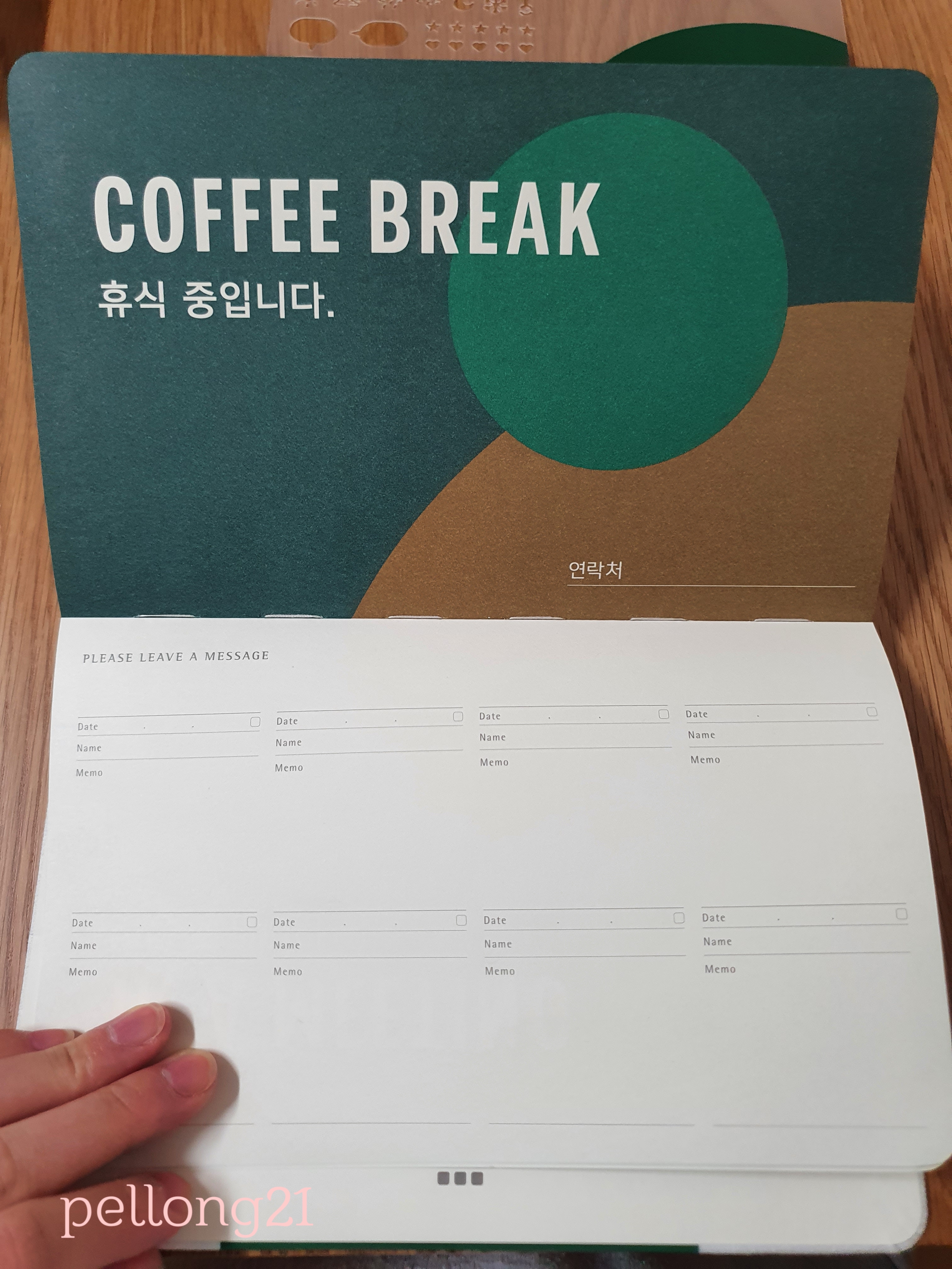 오오 역시 스벅 다이어리인가요? 스타벅스 답게 커피브레이크도 있습니다. 이건 정말 쓰기 어려운 페이지 같아요. 회사에서 커피마시러 갈 때 이거 해놓고 가기는 너무나 부담되는... 이 페이지 기획하신 분의 회사에 저도 다니고 싶습니다.. 그곳은 아마 이게 가능하니 이런 페이지를 넣으셨을 거에요.(?!)
