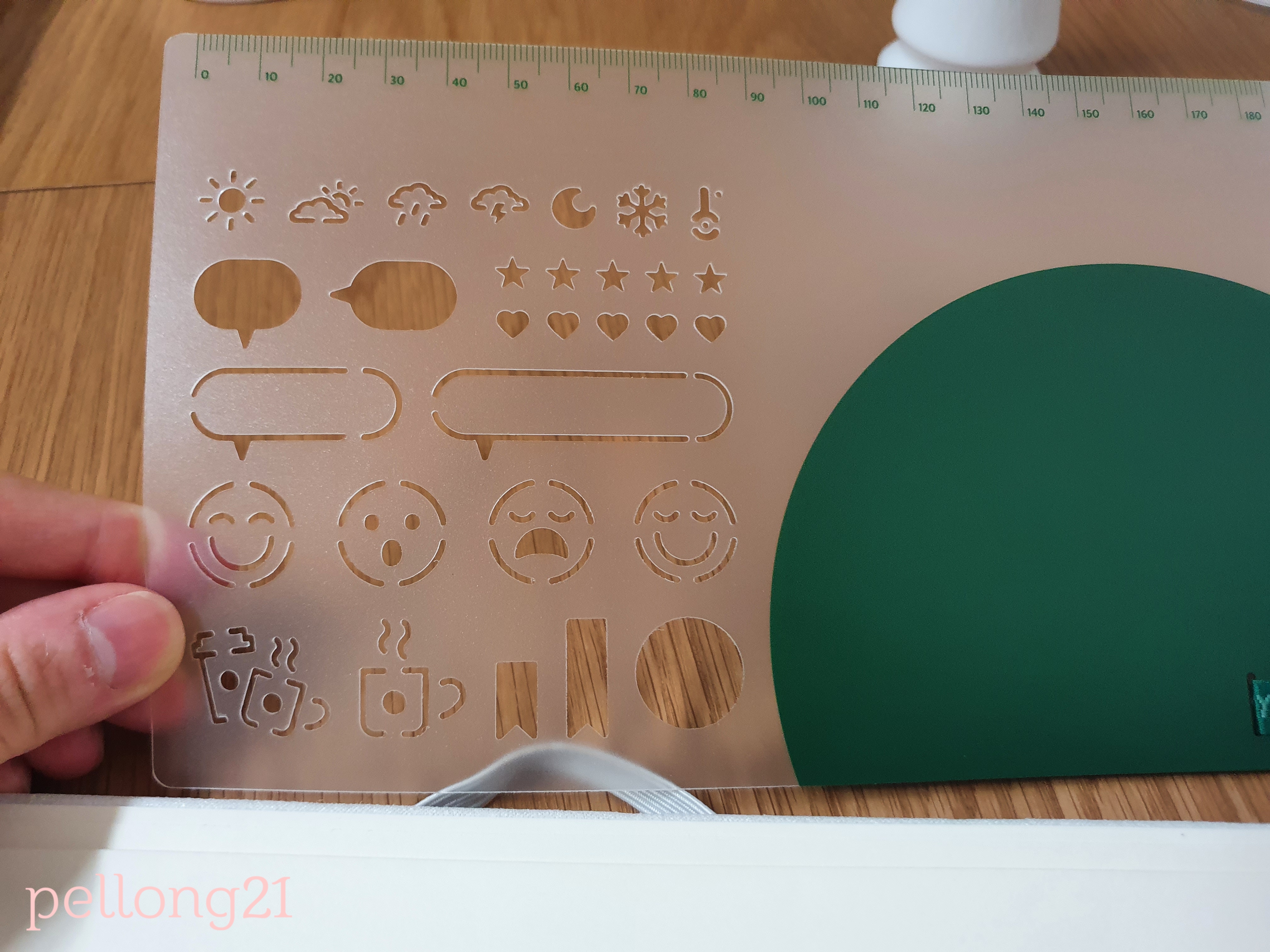 모양자 겸 책받침도 들어있네요. 호보니치 테쵸 사용하면서 책받침이 습관이 됐는데, 반갑네요. 한 번 쓰기 시작하니 정말 편하고 그 필감이 좋아서 계속 쓰게되는 것 같아요.
