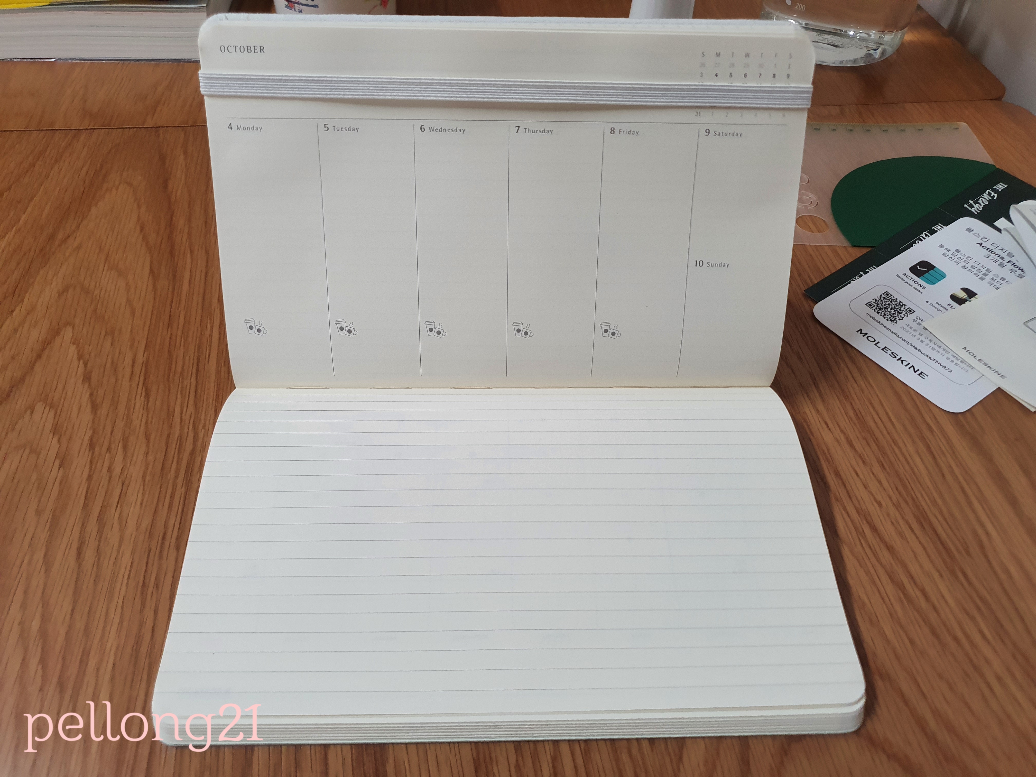 그 다음장은 바로 위클리입니다. 월간 12개 + 위클리 몽땅이 아니고, 월간 + 해당월 위클리여서 전 더 좋은 것 같아요. ㅎㅎㅎ 차례대로 쓰고 이런거 좋아해요. (월간은 사용계획이 없긴 하지만... 근데 회사에서 쓴다면 월간 모아져있는게 더 나을 것 같네요. 회사에서는 일정관리 하느라 월간을 많이 써서.. )