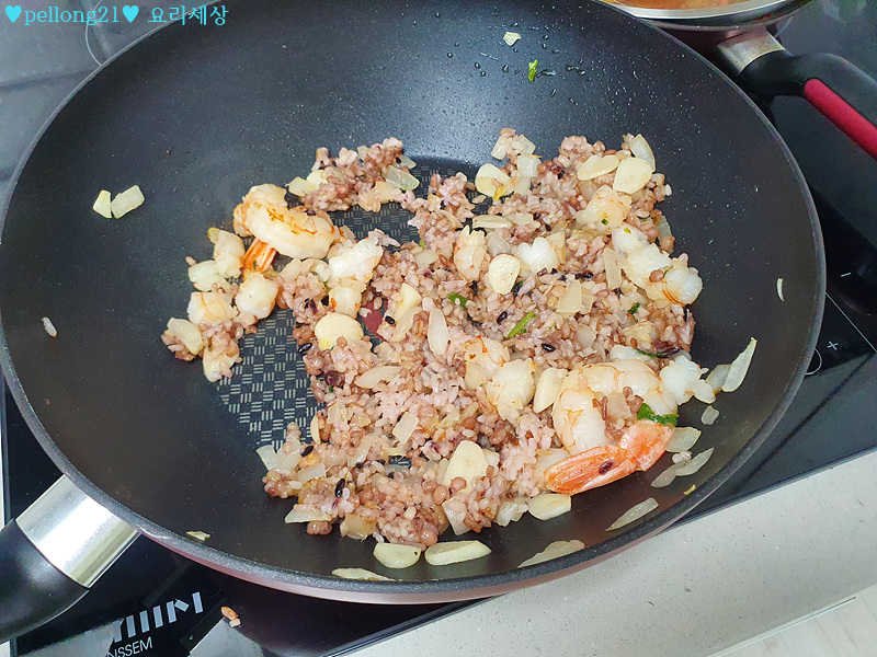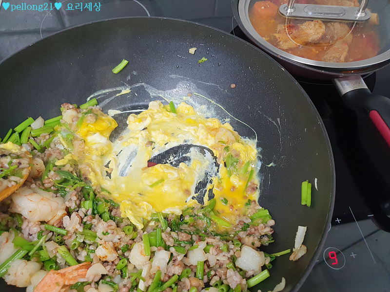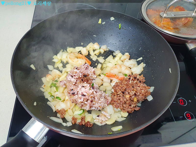 저는 냉동밥도 있고, 냉장고 식은밥도 있어서 둘다 넣었어요.