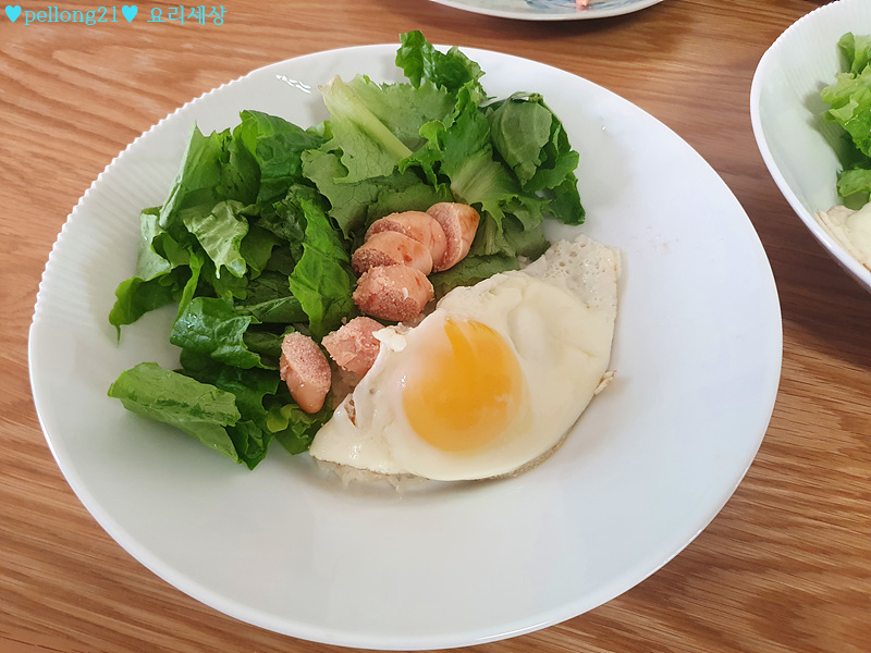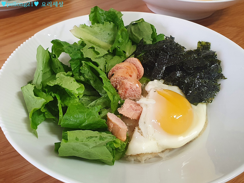 (그리고 사진에 없지만 계란후라이 반숙을 올려주세요. 세팅할동안 반숙 익을 수 있게요.)