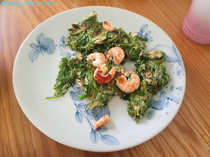 미나리부침개 너무 맛있었어요. 정말 강력추천 드리는, 그러면서도 너무 간편하게 만들 수 있는 요리입니다. 다음에 제가 다시 시도해보다면요, 새우를 좀더 작게 잘라서 골고루 섞이게 해볼 것 같아요. 반죽은 똑같이 묽게 그냥 할 것 같아요.
