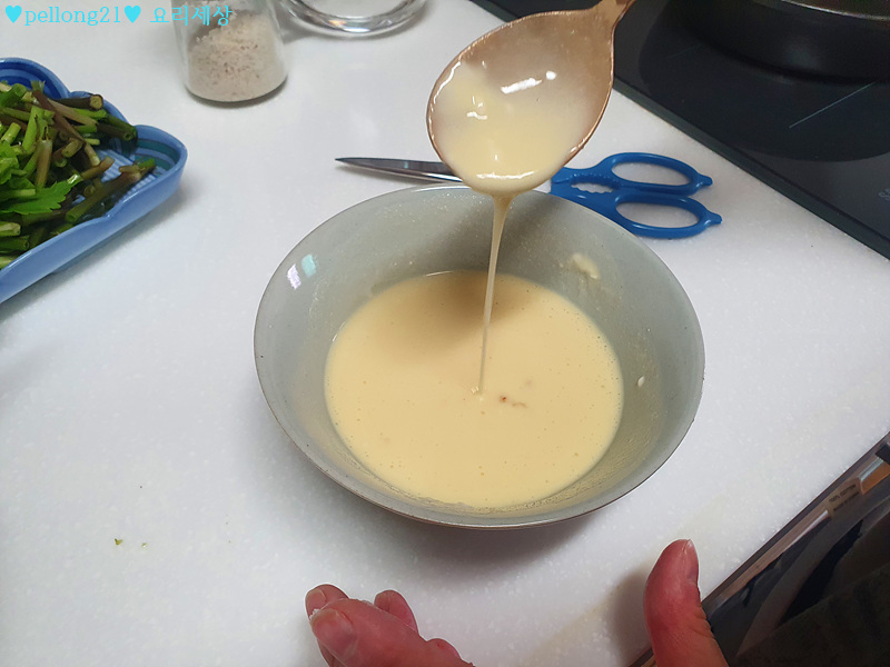 반죽이 충분하다 싶을 때까지 부어버리면 너무 많이 붓게 되어요. 그러니 조금 부족하다 싶게 해서 드시면 재료 맛도 더 나고 건강에도 더 좋을 듯해요. ^^