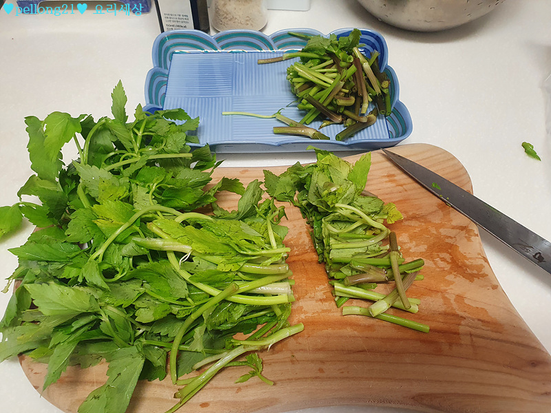 2. 미나리 손질해주세요. 저는 한 3~4센치 정도로 다듬어주었어요.