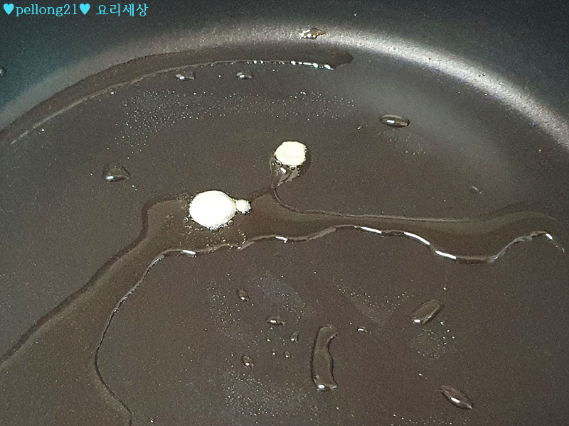 7. 팬을 달구고, 기름을 넣어주세요. 저는 카놀라유 넣었습니다.