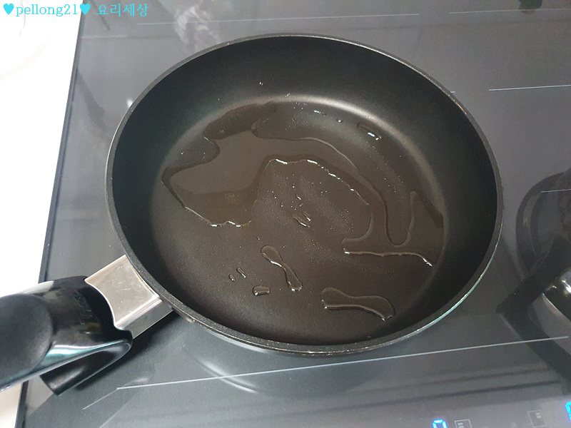7. 팬을 달구고, 기름을 넣어주세요. 저는 카놀라유 넣었습니다.