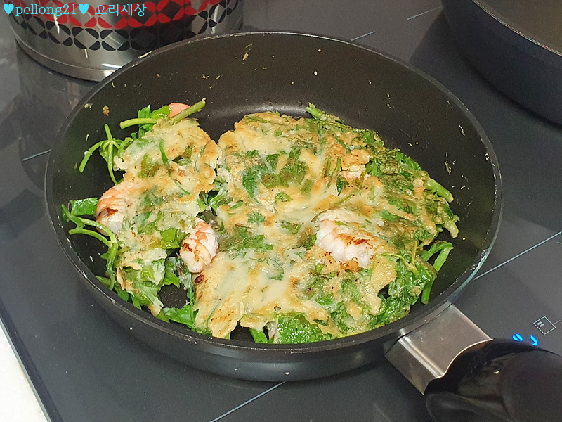 미나리부침개 너무 맛있었어요. 정말 강력추천 드리는, 그러면서도 너무 간편하게 만들 수 있는 요리입니다. 다음에 제가 다시 시도해보다면요, 새우를 좀더 작게 잘라서 골고루 섞이게 해볼 것 같아요. 반죽은 똑같이 묽게 그냥 할 것 같아요.