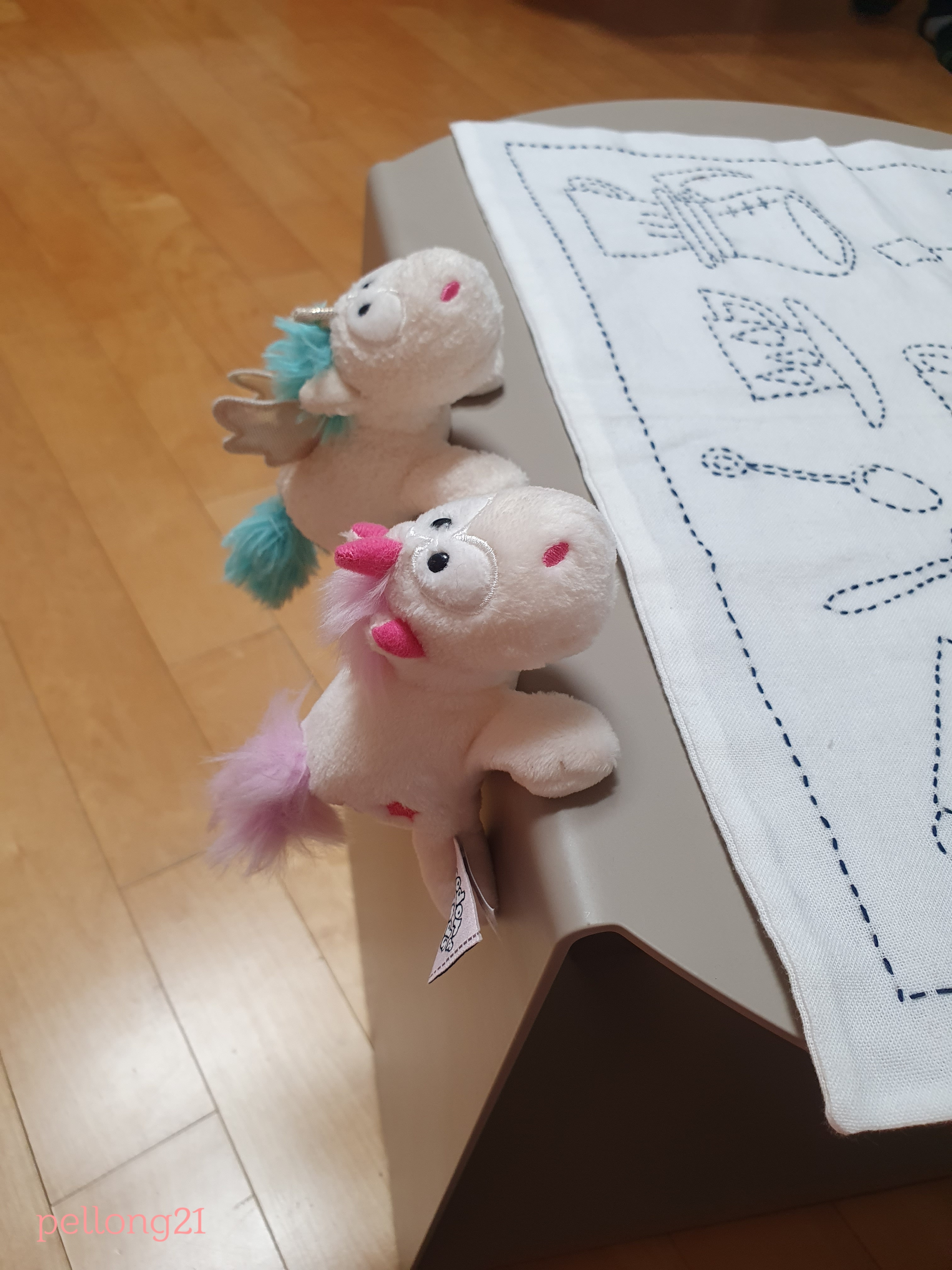 우리의 귀여운 냉장고 유니콘들은 결국 거실테이블로 이동..