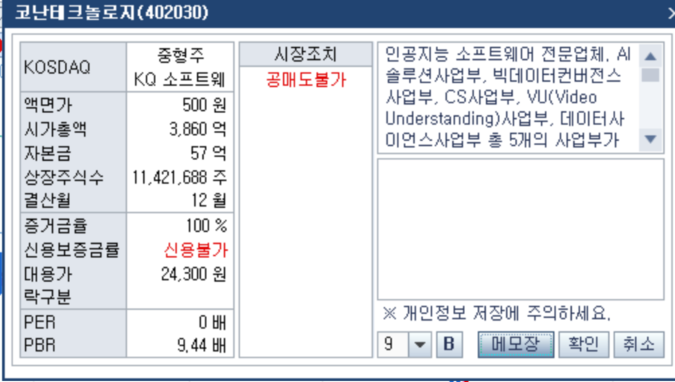 영업손실 중이고, 특별히 테마는 없지만