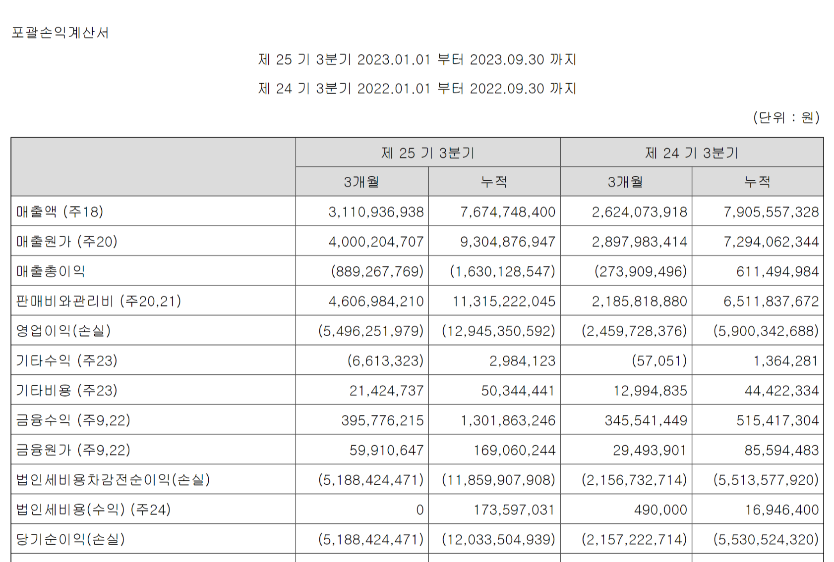2023년도 분기보고서로 미루어보건대 영업손실 예상됩니다.