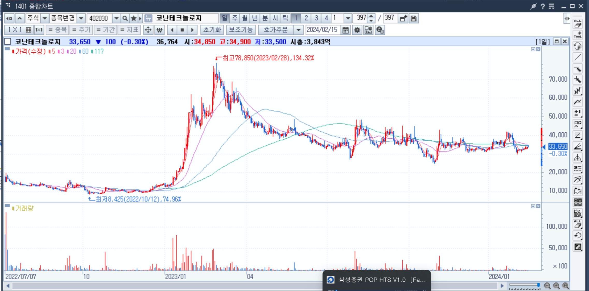 2022년 상장 이후부터 장기시계열의 차트입니다 .