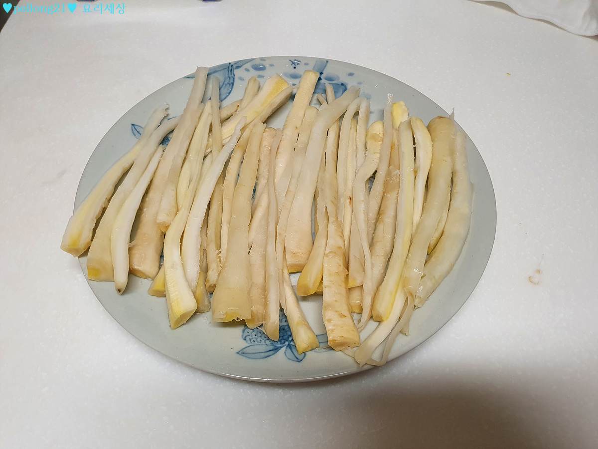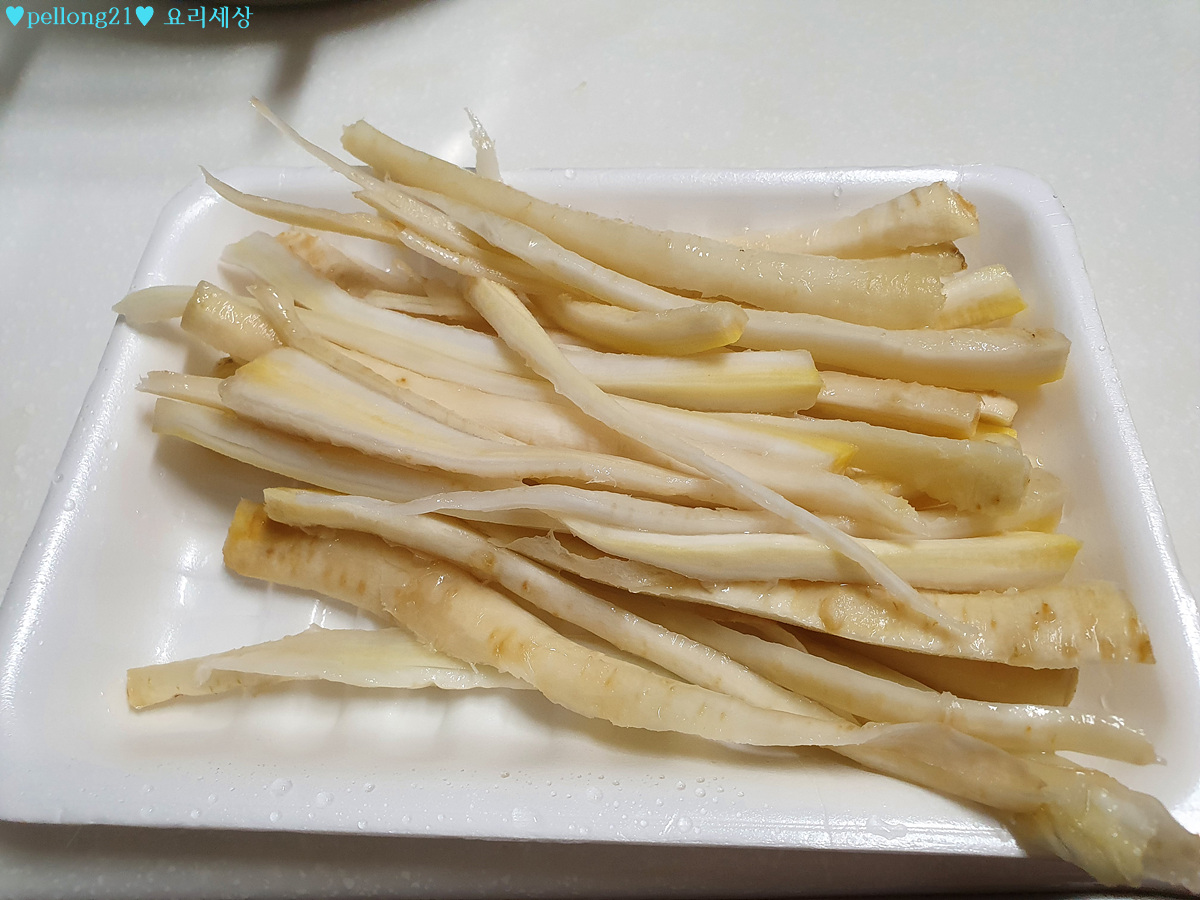 1. 깐도라지를 씻어주세요! (까지 않은 도라지라면 껍질까서 씻어주세요)